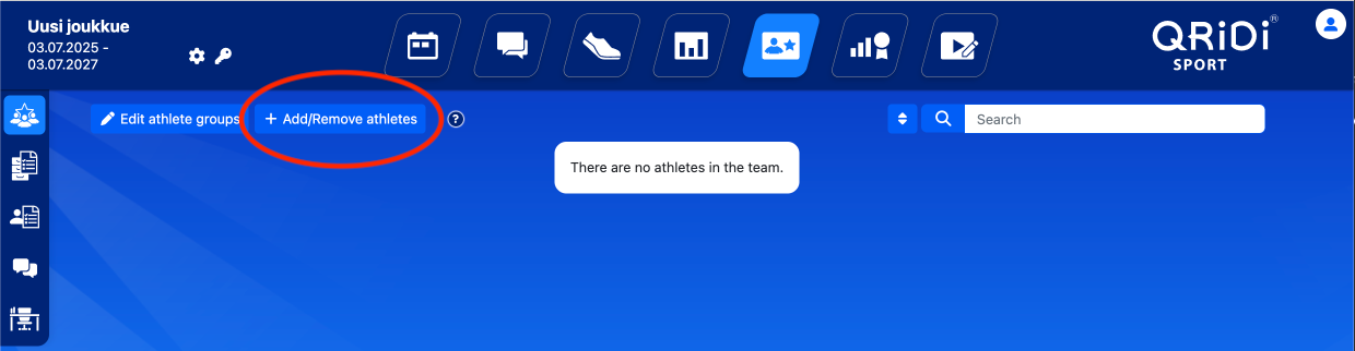 If you want to choose the option where the athletes themselves enter their own name and join the team, the athletes will automatically appear in the team's Athletes view after joining. As a coach, all you have to do is distribute the team's registration code to the athletes.