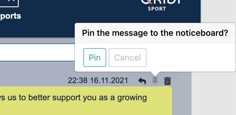 - Use the notice board. You can pin messages directly from the top of the message. These messages are then also visible on the team's notice board and no need to scroll the messages to find something important for the team.
